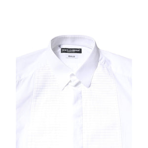 • Dolce & Gabbana White GOLD Cotton Poplin Bib Men Dress Shirt