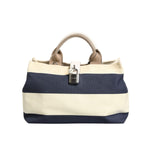Dolce & Gabbana White Navy Striped Canvas Top Handle Tote Bag
