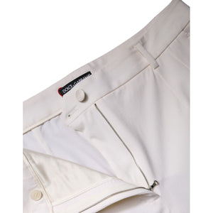 Dolce & Gabbana White Wool Mid Waist Wide Leg Pants
