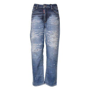 Dsquared² Blue Tattered Cotton Mid Waist Straight Denim Jeans