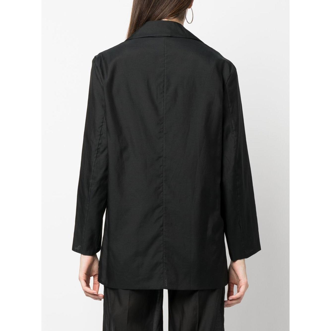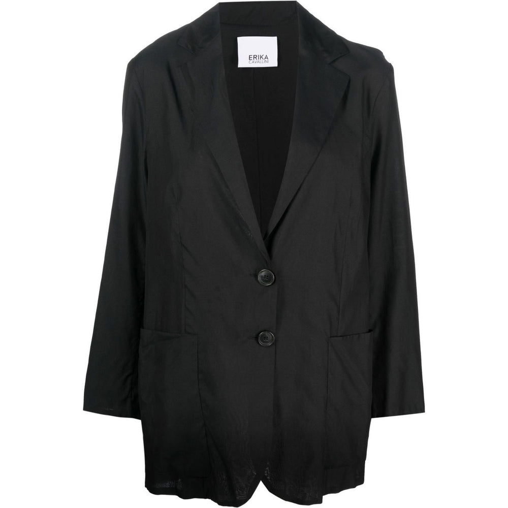 oversized single-breasted blazer from Erika Cavallini featuring two front patch pockets, jet black, silk, cotton, classic lapels, front button fastening and long sleeves. Silk blend jacket Size and Fit - This piece fits true to size. We recommend you get your regular size. Model is 1,75m / 5ft 8in wearing size S