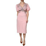 Ermanno Scervino Pink Floral Lace Short Sleeves V-neck Midi Dress