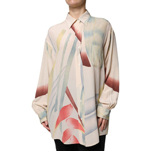 Etro Beige Printed Collared Buttoned Long Sleeves Blouse Top