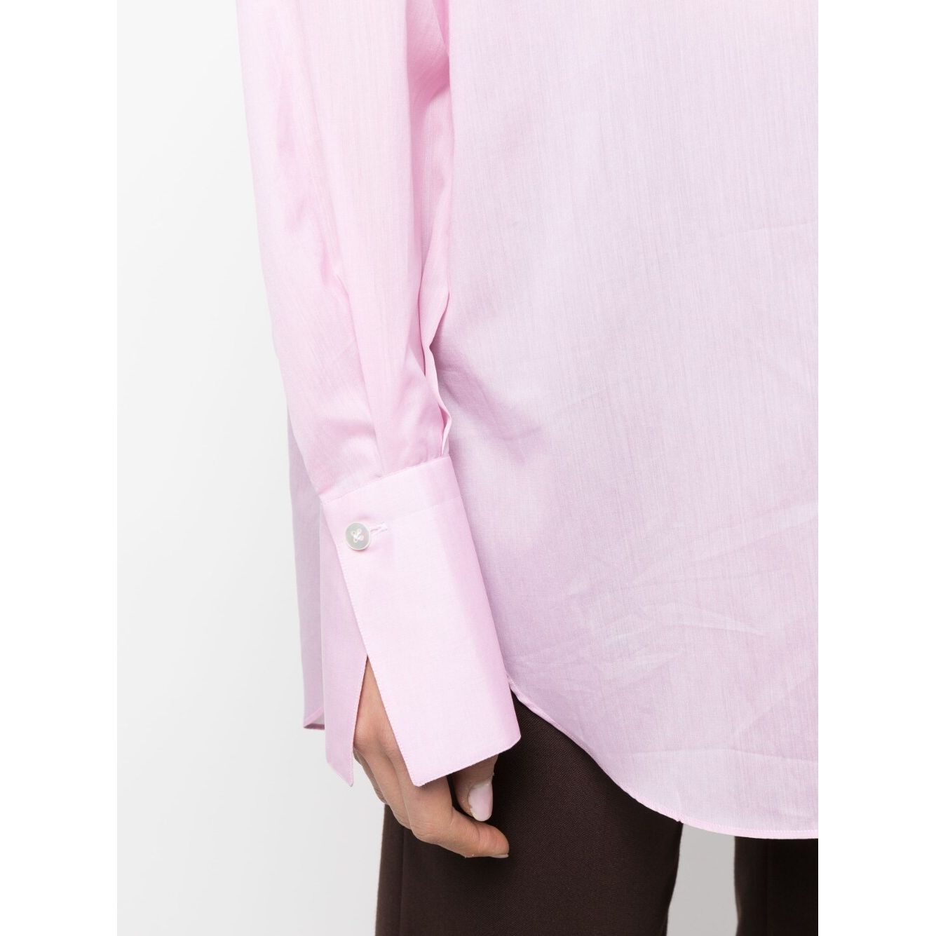 long-sleeve button-up cotton shirt from FINAMORE 1925 NAPOLI featuring light pink, oversize frame, pointed flat collar, buttoned cuffs, front button fastening, cotton, long sleeves and curved hem. Cotton shirt Size and Fit - This piece fits true to size. We recommend you get your regular size. Model is 1,75m / 5ft 8in wearing size 40 (IT)