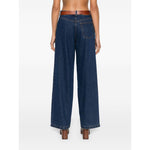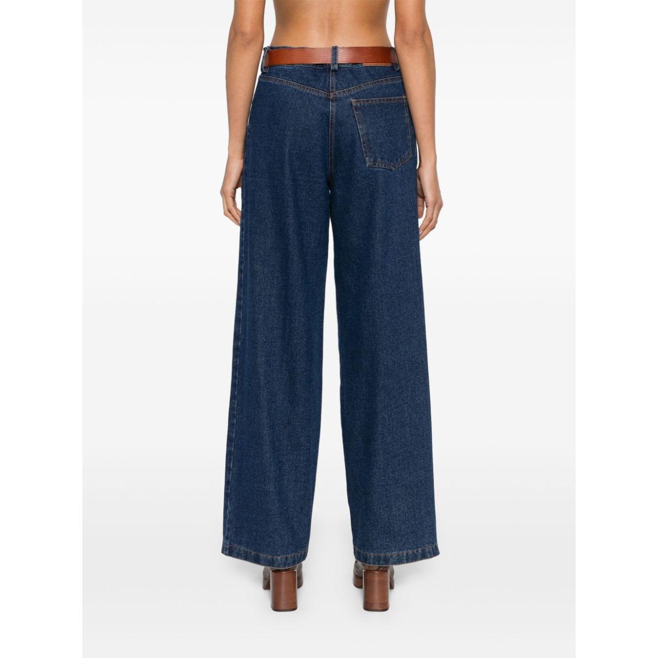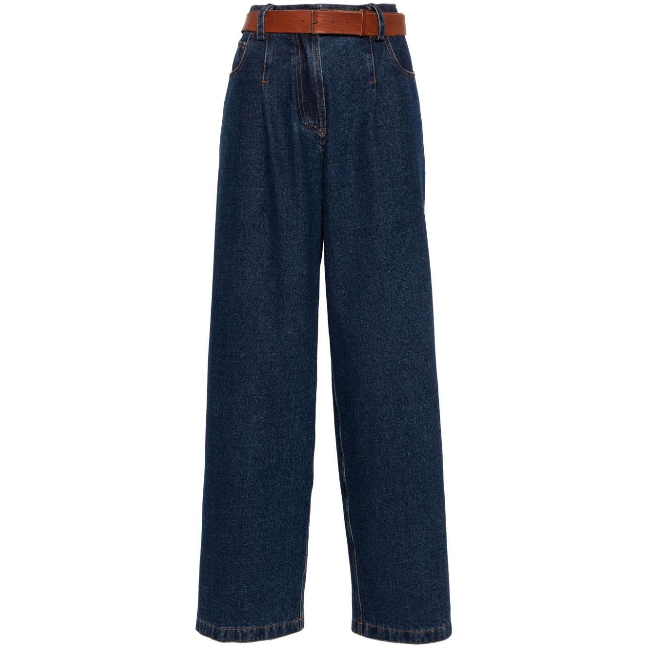 blue cotton denim dark wash belted waist contrast stitching two rounded pockets to the sides coin pocket logo patch to the rear rear patch pocket straight hem front button and zip fastening Wide leg denim jeans Size and Fit - This piece fits true to size. We recommend you get your regular size. Model is 1,75m / 5ft 8in wearing size 1 (NUM)
