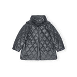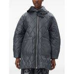 blue-grey recycled polyester padded design diamond quilting front zip fastening slouchy hood twist detailing drop shoulder long sleeves two front patch pockets straight hem This item is made from at least 50% recycled or upcycled materials. For recycled synthetic clothing products, we highly recommend using a microfibre-catching washing bag to ensure that no microplastics that can pollute water are released in the process. We've partnered with Good On You — an independent agency that rates how brands perform in relation to their impact on the planet, people and animals, with a multi-criteria rating simplified to a five points scale. In order to be awarded our conscious label, larger brands need to score a minimum of four out of five ('Good'), while smaller brands must score at least three out of five ('It's A Start'). This item comes from a brand rated three out of five ('It's A Start') by Good on You at the time it was added on FARFETCH. Please note, this is a brand-level rating and Quilted short jacket Size and Fit - This piece fits true to size. We recommend you get your regular size. Model is 1,75m / 5ft 8in wearing size S
