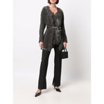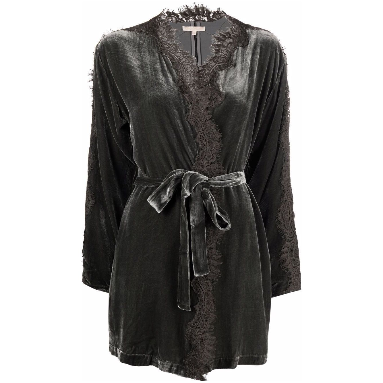 Dark grey lace-trim belted coat from GOLD HAWK featuring lace trim, V-neck, long sleeves, tied waist and two side slit pockets. Velvet long duster Size and Fit - This piece fits true to size. We recommend you get your regular size. Model is 1,75m / 5ft 8in wearing size S