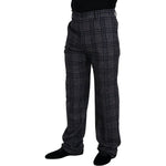 بنطلون دولتشي آند غابانا الأنيق المصنوع من مزيج الألبكة والمربعات الرمادية