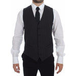 خطوة إلى الرقي مع هذه السترة المذهلة الأصلية والجديدة بنسبة 100٪ مع العلامات، سترة رسمية مخططة باللون الرمادي من مجموعة MainLine من Dolce & Gabbana. مثالية لإضافة لمسة من الأناقة إلى خزانة ملابس أي رجل نبيل. يضمن التصميم ذو الصدر الواحد مع حزام الخصر الخلفي القابل للتعديل ملاءمة مخصصة، بينما يضيف زر الإغلاق الأمامي الكامل لمسة كلاسيكية. تتميز هذه السترة المصنوعة في إيطاليا بتفاصيل فاخرة تجسد جوهر الخياطة الراقية.