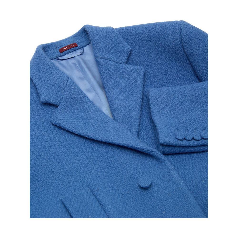 Front fastening with covered fabric buttons, two large side welt pockets, classic collar, back vent. Herringbone fabric workmanship. Internal lining