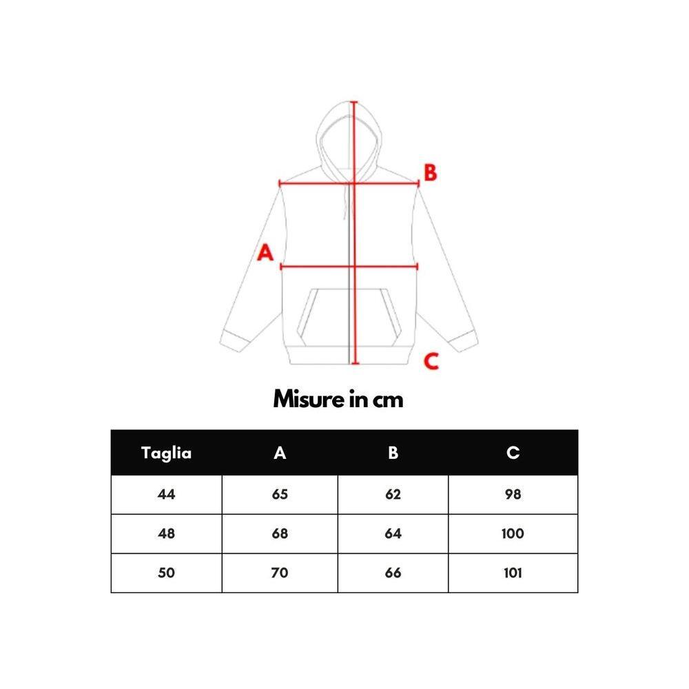In red, blue and ivory, front fastening with white zip, two side pockets closed with zip, adjustable hood with pullers, adjustable elastic waist, internal lining