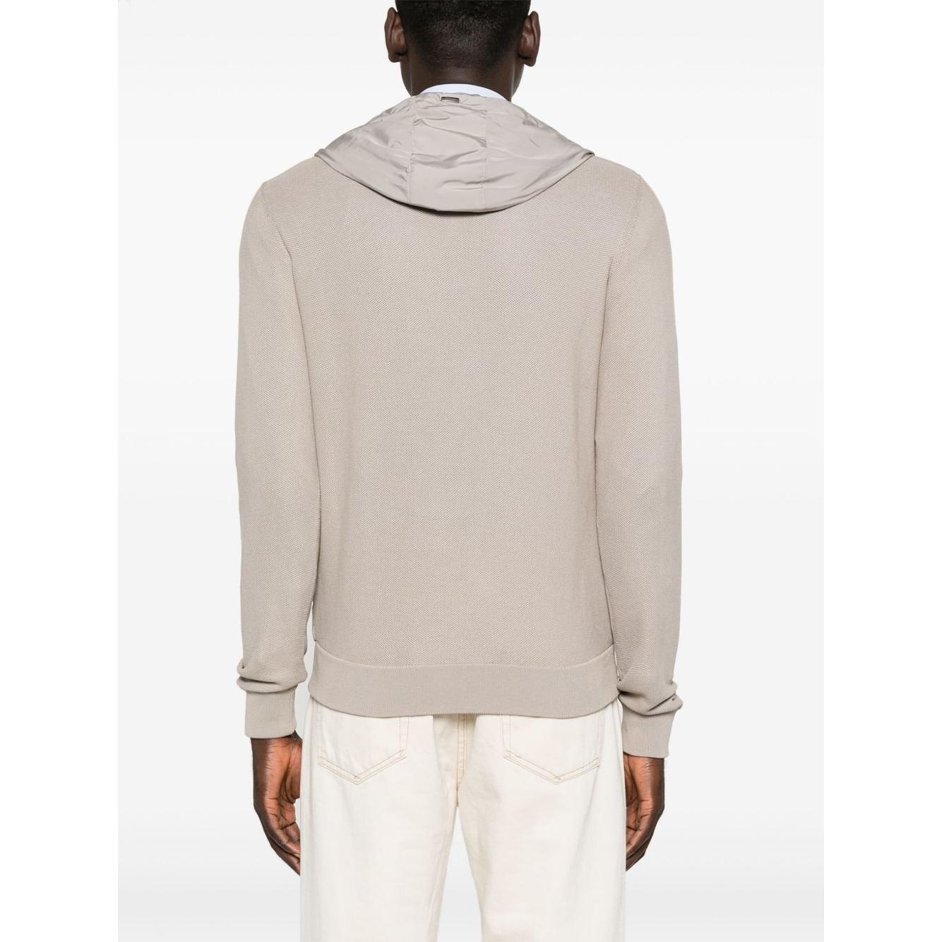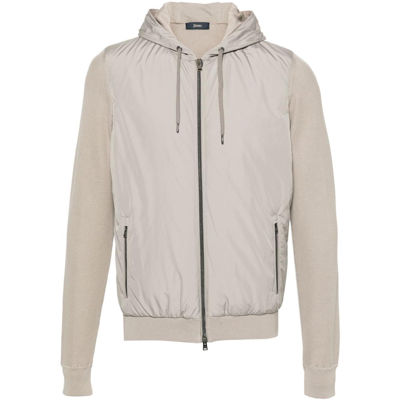 light beige cotton piqué weave drawstring hood long sleeves ribbed cuffs and hem contrasting panel detail two side zip-fastening pockets internal logo tag straight hem front two-way zip fastening Nylon and cotton blouson jacket Size and Fit - This piece fits true to size. We recommend you get your regular size. Model is 1,84m / 6ft 1in wearing size 48 (IT)