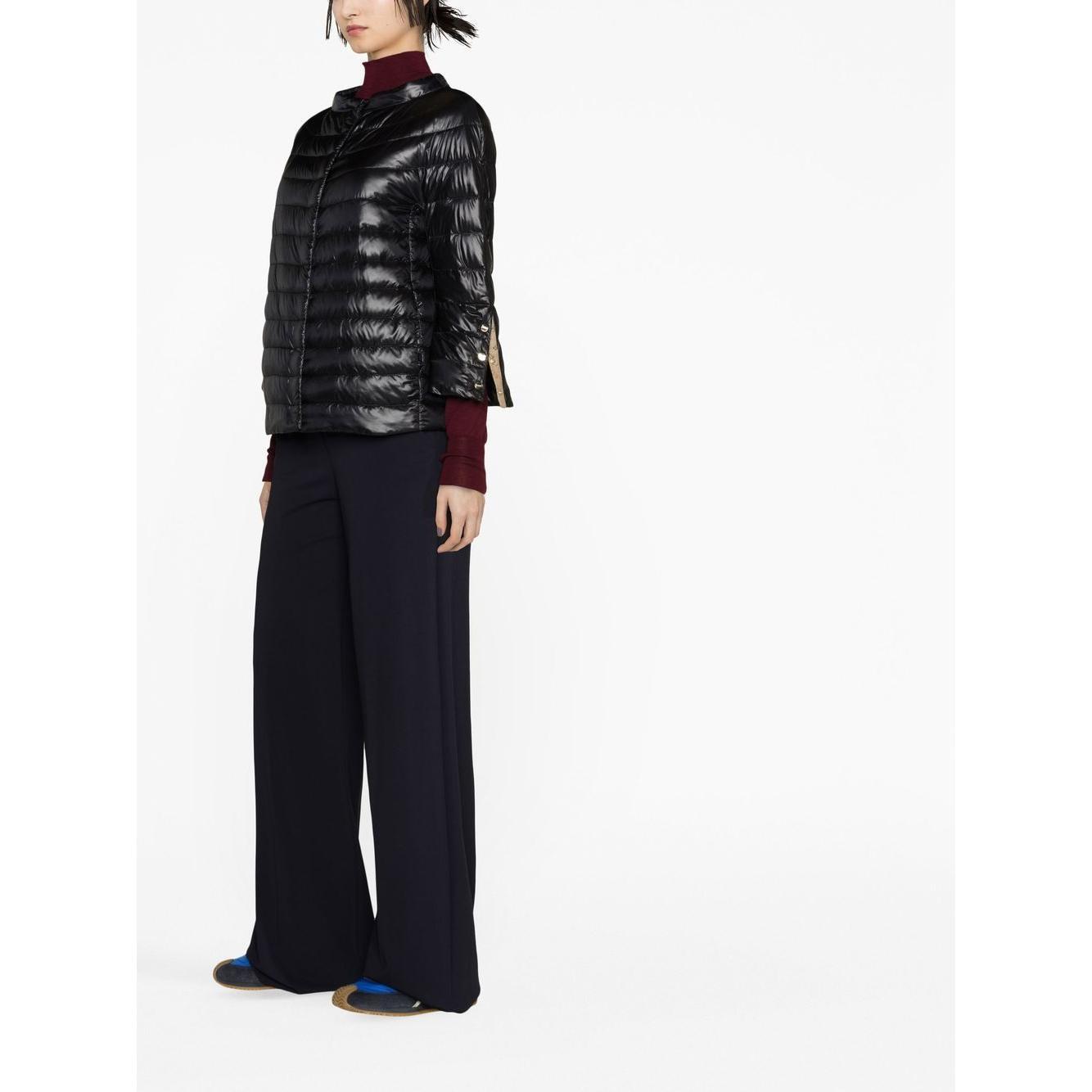 black down-feather filling quilted mock neck concealed front fastening long sleeves Nylon lightweight cape Size and Fit - This piece fits true to size. We recommend you get your regular size. Model is 1,75m / 5ft 8in wearing size 40 (IT)