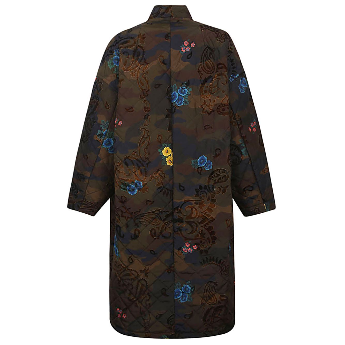 Cappotto verde, lungo, oversize, con stampa botanica, reversibile. Petra camouflage print ovesized coat Size and Fit - This piece fits true to size. We recommend you get your regular size. Model is 1,75m / 5ft 8in wearing size S