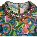 تمتعي بالأناقة والرقي مع هذا الفستان القصير من الحرير بطبعات هندسية متعدد الألوان من Dolce & Gabbana ، مزين بزخارف كريستالية متلألئة. مثالية لأولئك الذين يبحثون عن إضافة فاخرة وملفتة للنظر إلى خزانة ملابسهم، هذه القطعة المذهلة مصنوعة بأعلى حرفية في إيطاليا. قطعة متعددة الاستخدامات تضمن لك التميز في أي مناسبة بفضل تصميمها الفريد وتفاصيلها الرائعة.