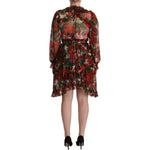 فستان قصير من الحرير بطبعات الأزهار من دولتشي آند غابانا يصل إلى الركبة