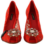 حذاء كعب عال من الدانتيل من دولتشي آند غابانا باللون الأحمر من تاورمينا