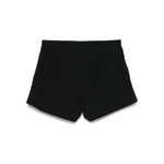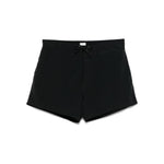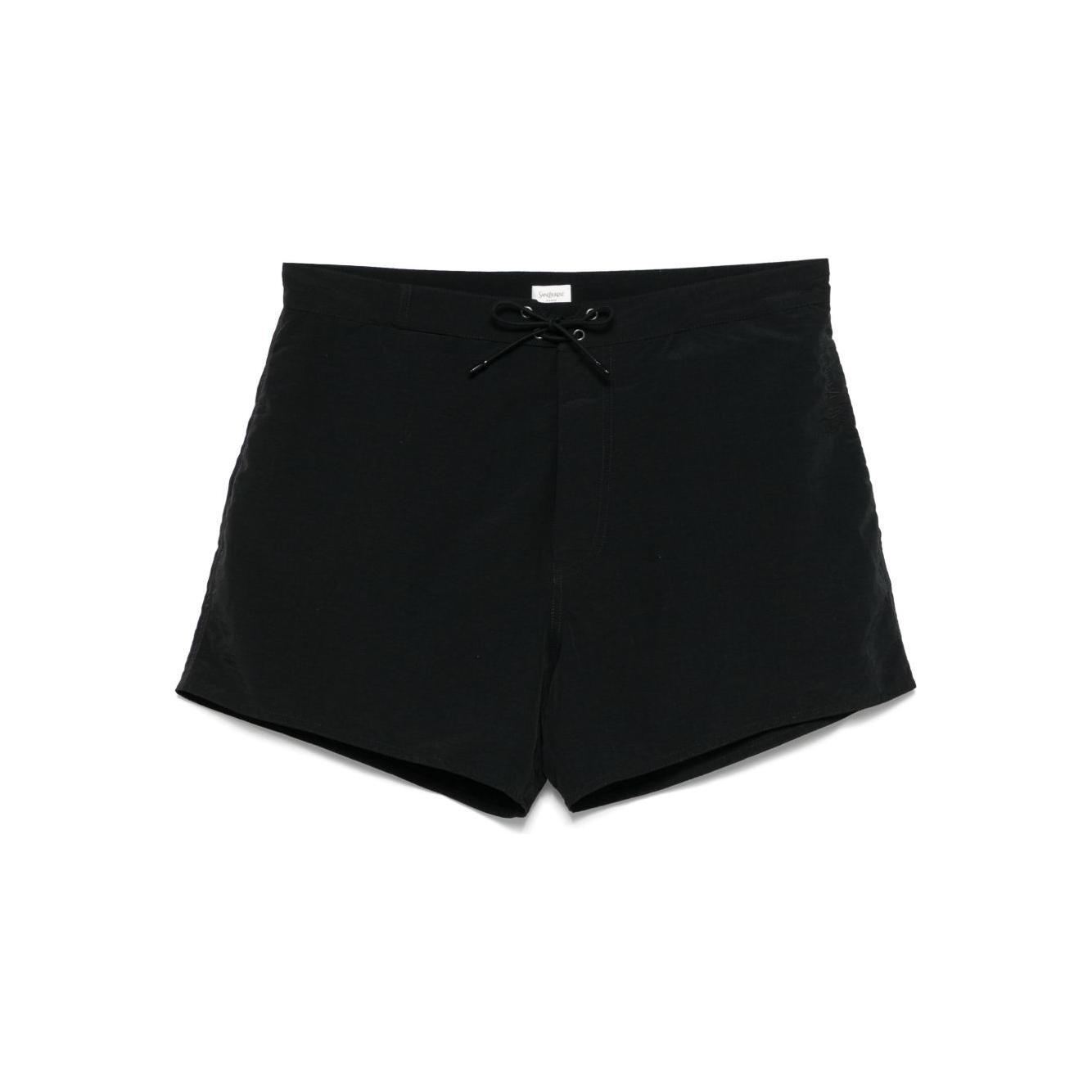 black self-tie fastening two side inset pockets partial lining Be mindful to try on swimwear over your own garments. Nylon swim shorts Size and Fit - This piece fits true to size. We recommend you get your regular size. Model is 1,84m / 6ft 1in wearing size M