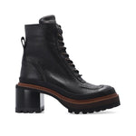 – Composition: 100% calf leather – Leather lining and insole – Rubber sole – Textured black leather – Lace-up fastening – Side zip fastening – Back logo detail – Heel 7 cm / 2,75 in – Made in Spain –