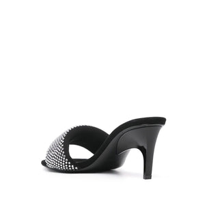 black crystal embellishment round open toe single arched strap open back branded leather insole 60mm mid sculpted heel leather sole slip-on style This piece comes complete with a protective dust bag. Rem strass embellished mules Size and Fit - Heel 2,4 in / 6 cm
