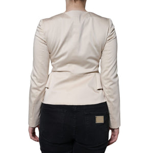Valentino Beige Cotton Long Sleeves Round Neck Blazer Jacket