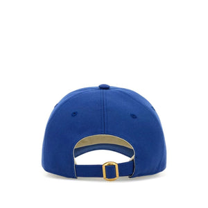electric blue adjustable strap to the rear six-panel construction curved peak eyelet vents Chez Valentino cotton cap