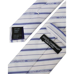 ربطة عنق دولتشي آند غابانا من الحرير قابلة للتعديل بخطوط بيضاء وزرقاء