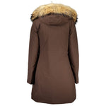 LONG JACKET WITH LONG SLEEVES WITH HOOD AND REMOVABLE FUR, 2 POCKETS, ZIP AND BUTTONS, LOGO