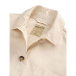 light beige front button fastening chest patch pocket elasticated waistband buttoned cuffs Cotton shirt jacket Size and Fit - This piece fits true to size. We recommend you get your regular size. Model is 1,75m / 5ft 8in wearing size S