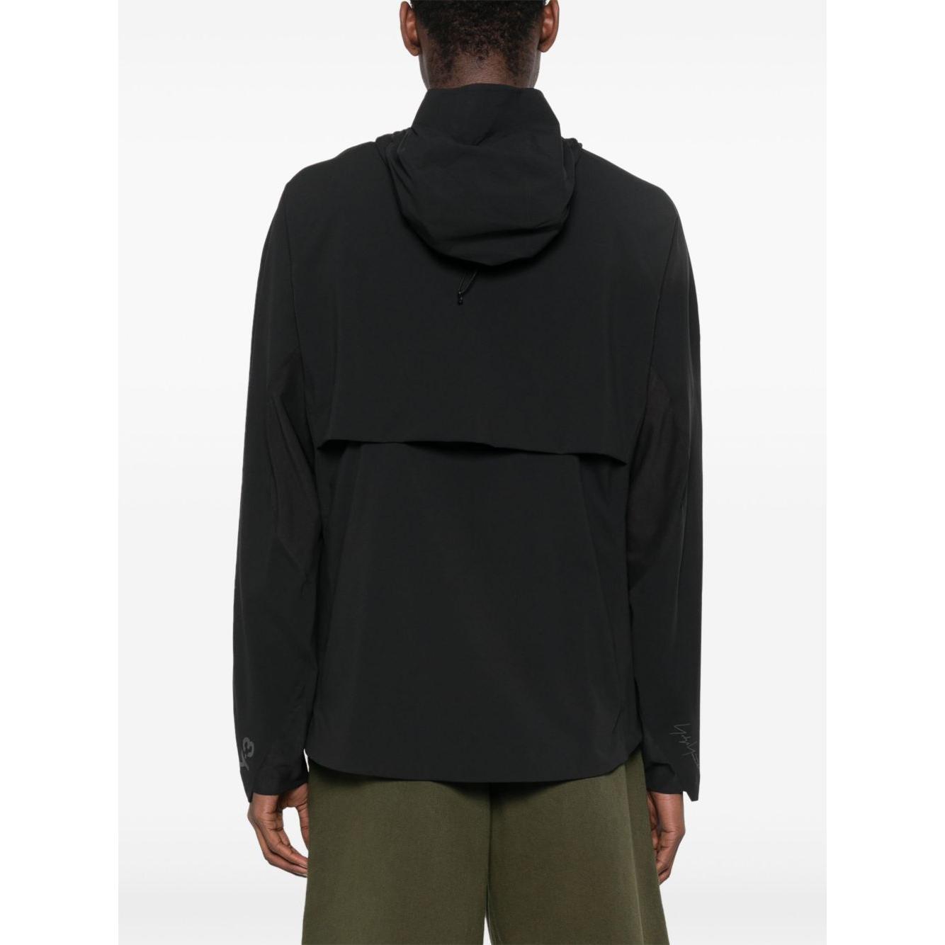 black front two-way zip fastening two side zip-fastening pockets reflective detailing tulle panels M Run hooded jacket Size and Fit - This piece fits true to size. We recommend you get your regular size. Model is 1,84m / 6ft 1in wearing size M
