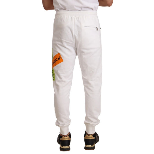 Dolce & Gabbana White Cotton Logo Patch Sweatpants Jogging Pants