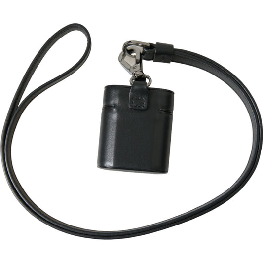Dolce & Gabbana Black Leather Strap Silver Metal Logo Printed Airpods Case
