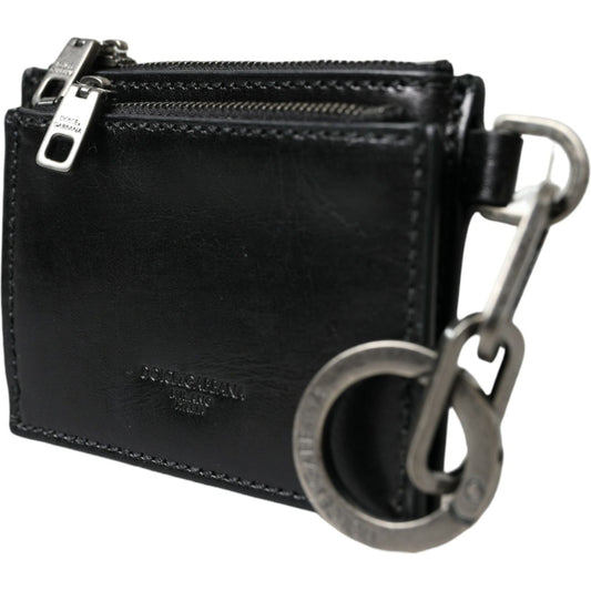 Dolce & Gabbana Black Leather Zip Logo Keyring Coin Purse Keyring Wallet