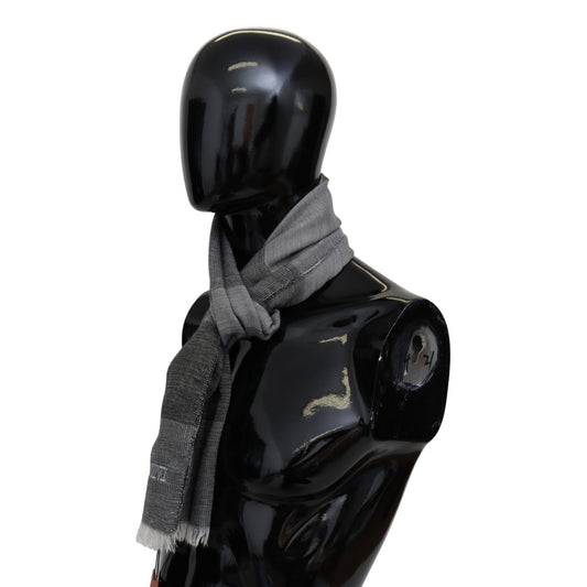 Missoni Gray Striped Wool Unisex Neck Wrap Fringes Scarf