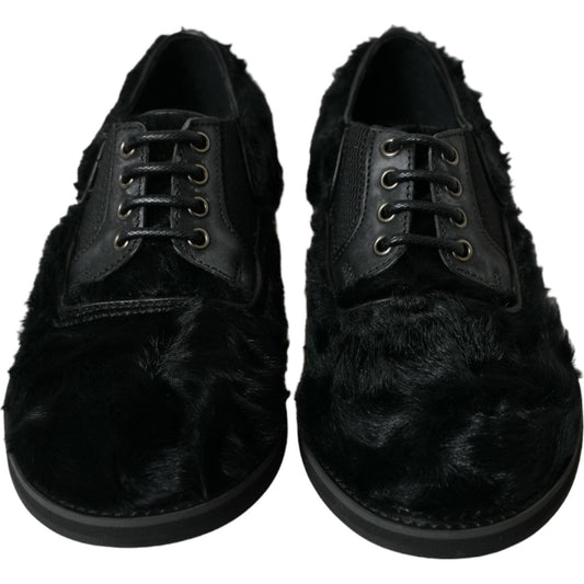 Dolce & Gabbana Black Fur Leather Lace Up Derby Dress Shoes