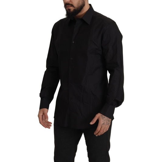 Dolce & Gabbana Black Cotton GOLD Slim Fit Dress Shirt