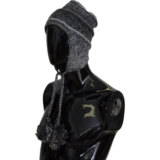 Dolce & Gabbana Gray Warm Fleece Ear Flaps Knit Beanie Hat