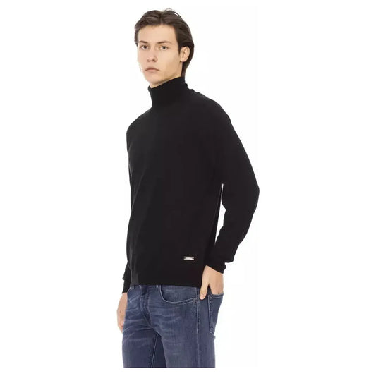 Baldinini Trend Black Fabric Men Sweater with Turtleneck Design