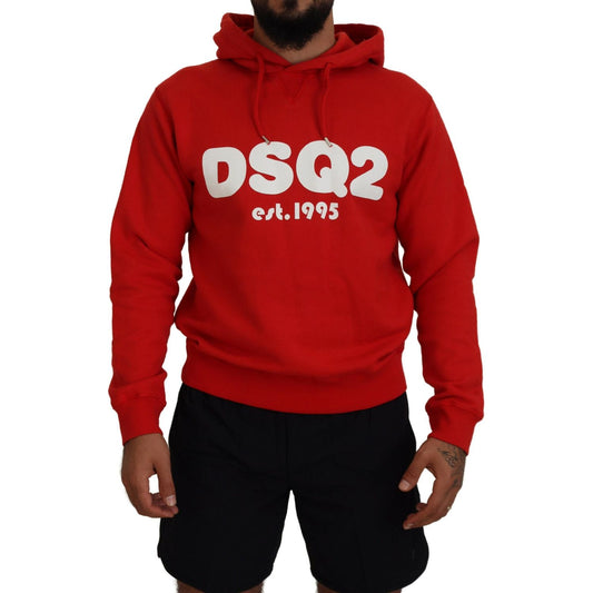 Dsquared² Red Cotton Hooded Printed Men Pullover Sweater