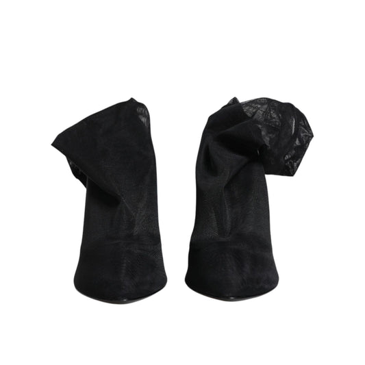 Dolce & Gabbana Black Silk Stretch Mesh Sock Boots Shoes