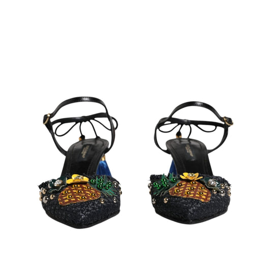 Dolce & Gabbana Black Pineapple Bellucci Heels Sandals Shoes