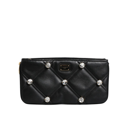 Dolce & Gabbana Black Leather Crystal Embellished Logo Shoulder Bag