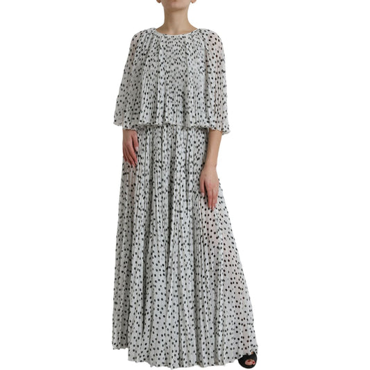 Dolce & Gabbana White Polka Dot A-line Pleated Maxi Dress
