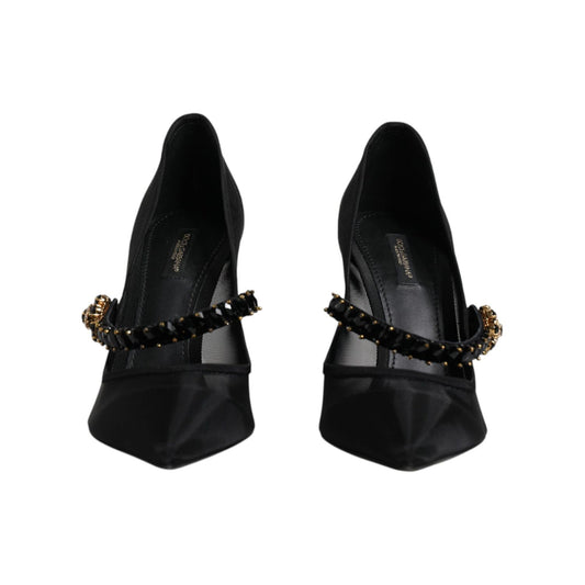 Dolce & Gabbana Black Mesh Mary Jane Crystal Heel Pumps Shoes