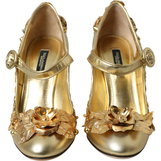 Dolce & Gabbana Gold Floral Crystal Mary Janes Pumps
