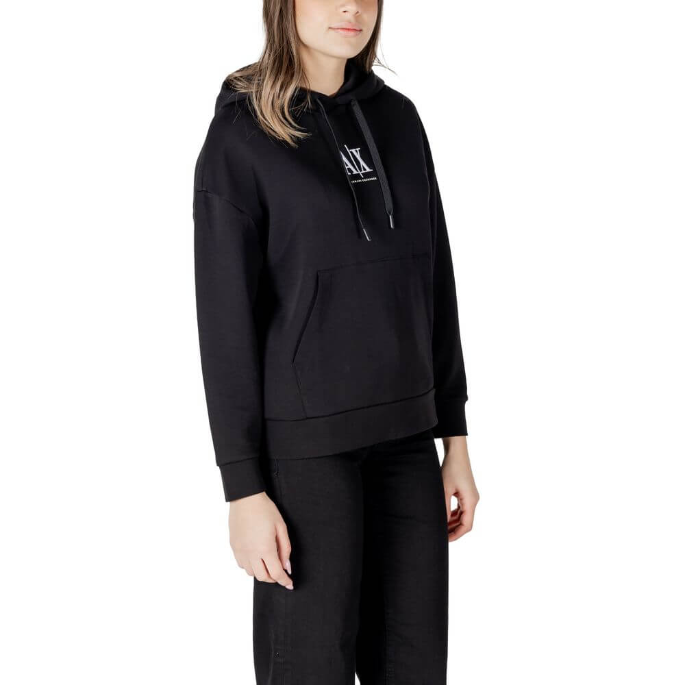 The Armani Exchange women’s hoodie, model XW000823 AF10818, is a must-have piece with a contemporary design. Crafted from a blend of 79% cotton, 17% polyester, and 4% elastane/lycra, it ensures a comfortable fit and pleasant stretch, adapting perfectly to everyday movements. The Armani Exchange logo printed on the chest adds a distinctive, modern touch, while the adjustable drawstring hood and large front kangaroo pocket provide both practicality and style. Ideal for leisure time or casual looks, this hoodie stands out for its attention to detail and high-quality materials, guaranteeing comfort and versatility in any season.