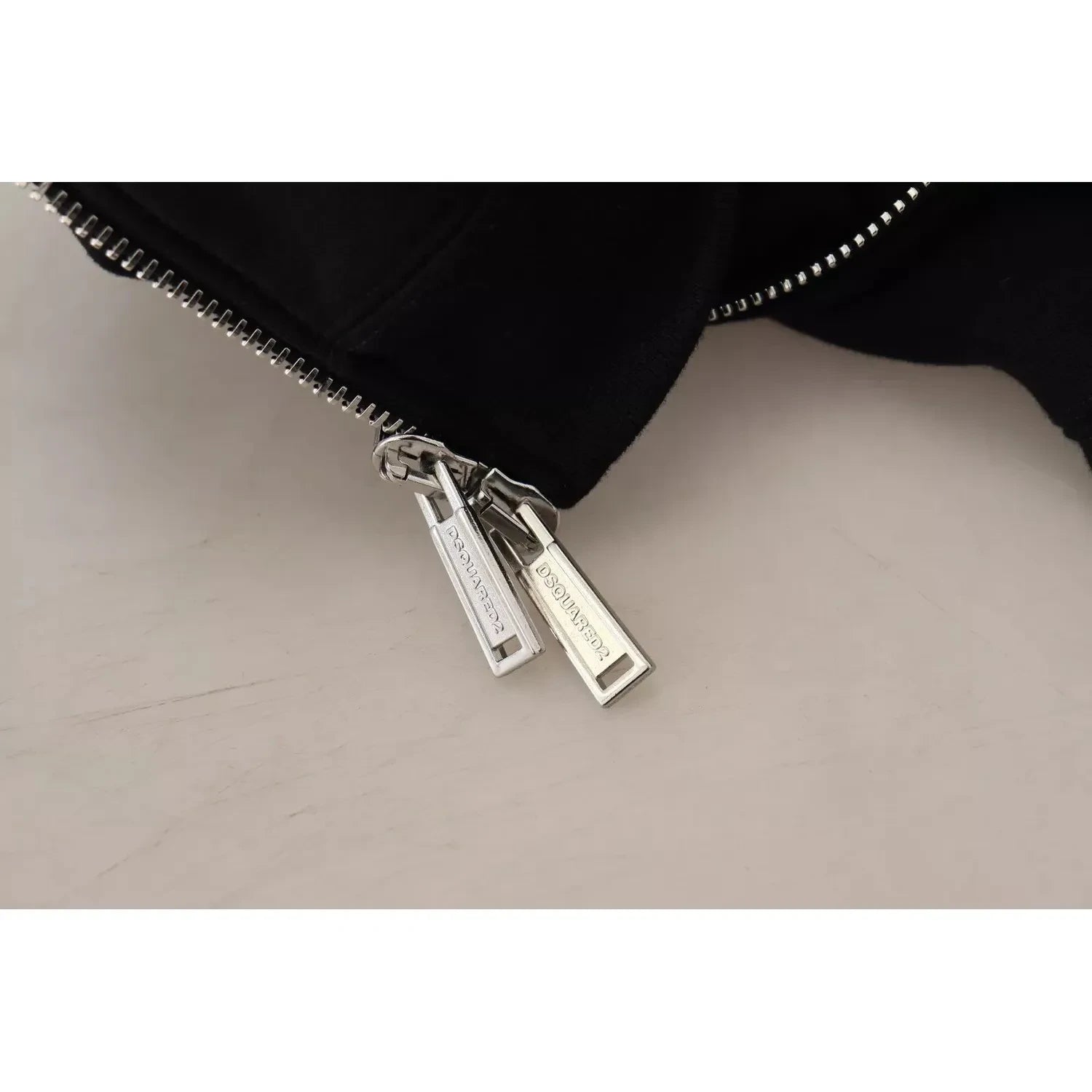 Dsquared² Black Hooded Full Zip Printed Sleeves Sweater
