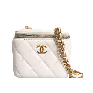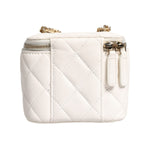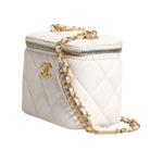 • Chanel White Matelasse Lambskin Gold Chain Shoulder Vanity Mirror
