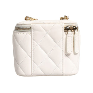 Chanel White Matelasse Lambskin Gold Chain Shoulder Vanity Mirror
