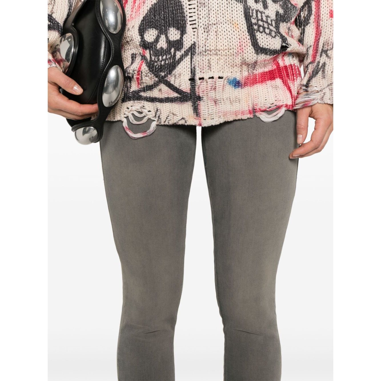 grey front zip fastening belt loops classic five pockets logo patch to the rear Skinny denim jeans Size and Fit - This piece fits true to size. We recommend you get your regular size. Model is 1,75m / 5ft 8in wearing size 27 (WAIST CM)